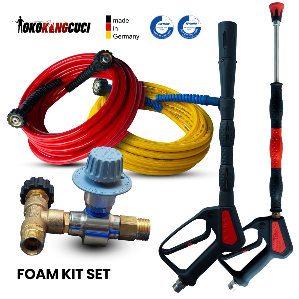 Mulai dari High Pressure Water machine, Pump, Washer Gun, Foam Gun, Foam Kit hingga selang semua sudah tersedia dan siap pakai, dengan peralatan yang memadai pengusaha cuci untuk menunjang pekerjaan agar bisa lebih cepat dan effisien sehingga mampu menambah omzet harian dengan mudah.